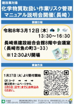 - 令和8年1月27日3月12日「建設業における化学物質取扱い作業リスク管理マニュアル」説明会が長崎で開催